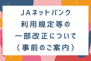 2026.03.19新着情報重要なお知らせ「JAネットバンク利用規定」等の一部改正について(事前のご案内) NEW -