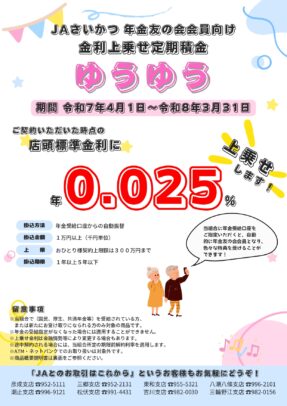 JAさいかつでは利用者の目的に合わせた幅広い商品をご用意しています。
